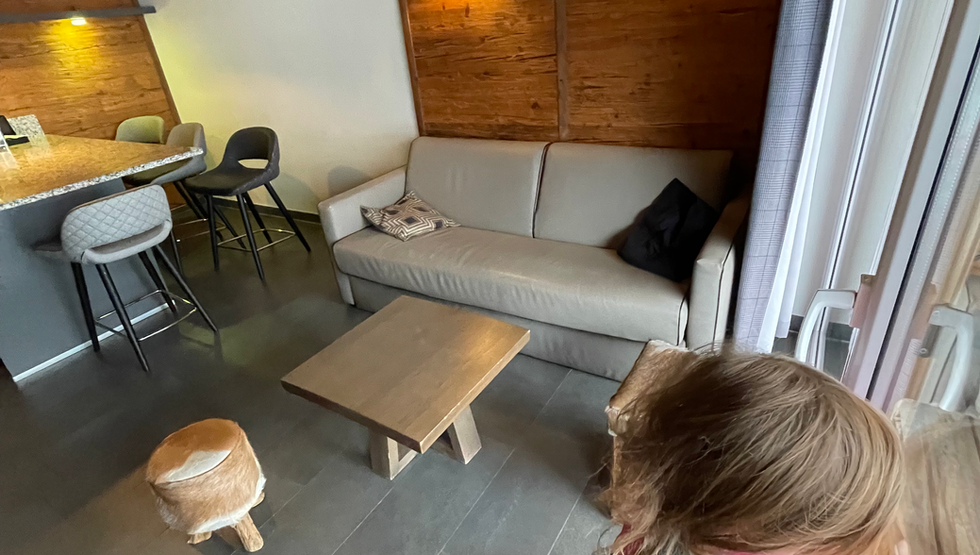 Součástí apartmánu byla kuchyňka, obývací část, spousta úložného prostoru a jako třešnička na dortu obrovská terasa s posezením. Každé ráno jsme z ní koukali na nádherné panorama hor. To bylo opravdu výjimečné.