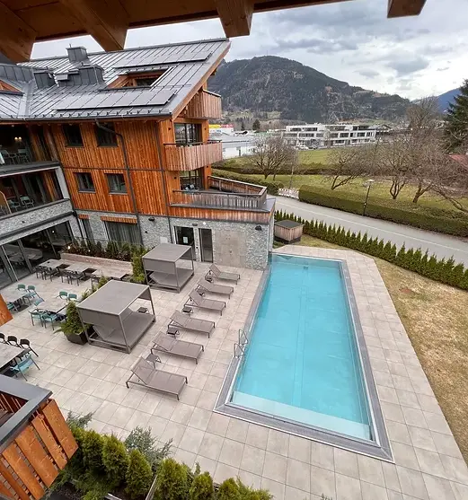 Nestled between mountains, glacier and lake: In the stylish four-star hotel ELEMENTS Resort, tradition and modernity are present in many small details. Luxury is combined with comfort; the rooms and suites, the restaurant and the spa area – with outdoor pool and sauna – convince with atmospheric ambience. Located in the immediate vicinity of the AreitXpress up to the Schmittenhöhe, and with numerous shops and restaurants nearby, the hotel is the perfect starting point for summer and winter holidaymakers.